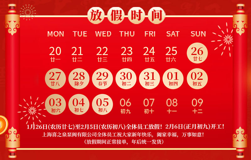 喜之泉泵閥有限公司全體員工祝大家新年快樂(lè ),闔家幸福,萬(wàn)事如意!